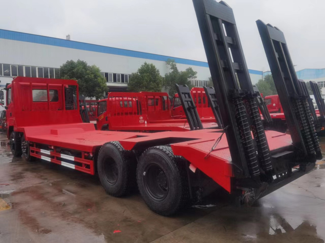 | 整車配置: | 底盤配置:齊星20S四點懸浮豪華版,玉柴350馬力,法士特10檔變速箱,1700+5800+1350軸距,前后橋5.5噸/13噸,輪胎11.00R20鋼絲胎。 上裝配置:下沉部分4.7米,寬度2.55米,方筒145*120套120*100的8個厚的錳鋼,下沉部分離地高度90公分,面板采用8mm厚花紋板或10mm、12mm平板,加密斜支撐,板面鋪設防滑鋼條,車尾雙彈簧加強型爬梯【三道筋】,便于工程車上下安全,斜坡下有后支腿,選裝平板板面【液壓或手動】伸縮加寬、選裝【液壓或手動】折疊爬梯;該車有國家環保公告和燃油公告,可在全國各地上牌、辦理營運證。 | ||